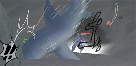 サメは、いつもは釣り上げて倒してるらしいんですけど